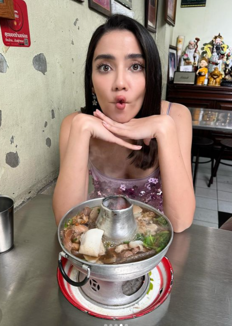 ล่าสุด สาวจีน่าได้โพสต์รูปลงอินสตาแกรม พร้อมระบุแคปชั่นว่า ชุด + ก๋วยเตี๋ยว Ummm. บอกเลยว่าชุดเดรสสายเดี่ยวแซ่บมาก