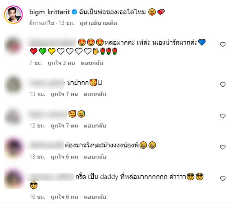 เรียกได้ว่า เป็นพระเอกหนุ่มมาดเข้ม อย่าง บิ๊กเอ็ม กฤตฤทธิ์ บุตรพรม ที่มีผลงานมากมายในวงการบันเทิง ล่าสุด เจ้าตัวออกมาโพสต์รูปผ่านทางอินสตาแกรมส่วนตัว พร้อมระบุแคปชั่นว่า CAN I BE YOUR DADDY แปล ฉันเป็นพ่อของเธอได้ไหม ซึ่งเป็นรูปที่กำลังอุ้มเด็กน้อยคนหนึ่งอยู่นั่นเอง