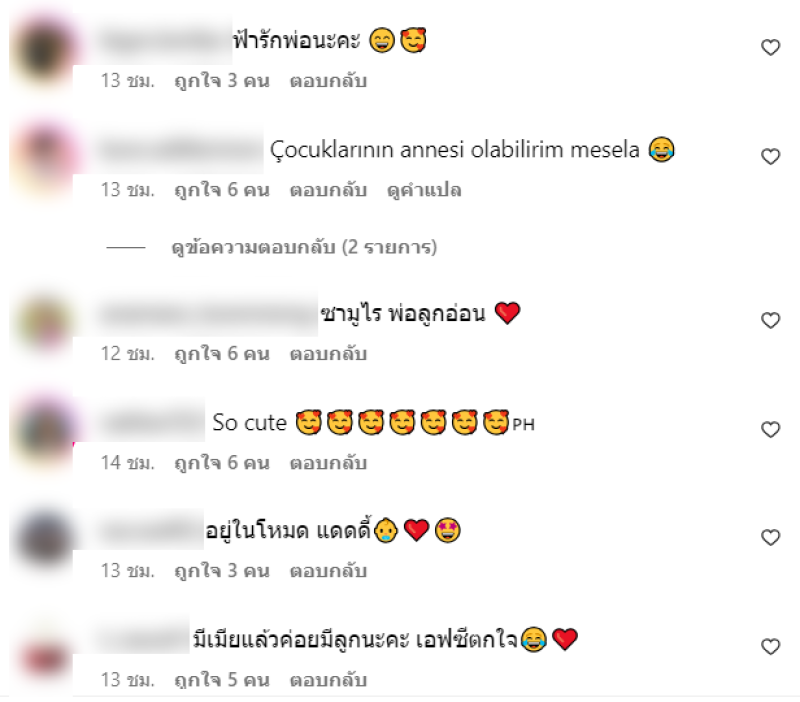 งานนี้ ทำเอาแฟนคลับใจหายใจคว่ำมาก หลังเห็นรูป ได้เข้ามาคอมเมนต์กันจำนวนมาก เช่น หล่อมากค่ะ เท่ค่ะ นเองน่ารักมากค่ะ,มีเมียแล้วค่อยมีลูกนะคะ เอฟซีตกใจ,ต้องมาจริงๆละม้างงงงน้องพี่ เป็นต้น