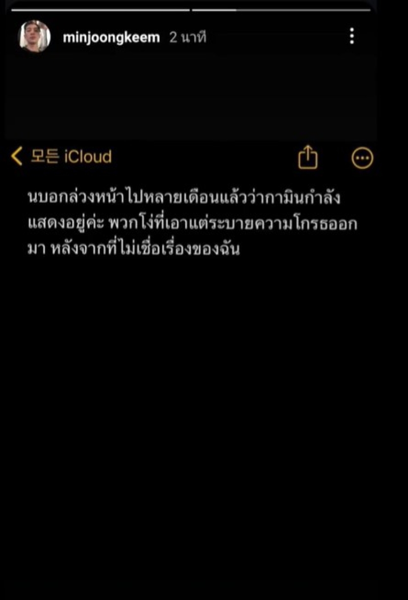 โดยได้แคปสตอรี่แต่ล่ะอันของแฟนเก่ากามินมาลง ซึ่งจริงแท้ยังไงก็ไม่ทราบ แฟนๆต้องฟังหูไว้หูนะคะ