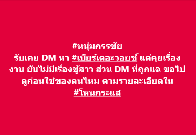 ล่าสุด เพจดัง ได้ออกมาโพสต์โดยระบุว่า #หนุ่มกรรชัย รับเคย DM หา #เบียร์เดอะวอยซ์ แต่คุยเรื่องงาน ยันไม่มีเรื่องชู้สาว ส่วน DM ที่ถูกแฉ ขอไปดูก่อนใช่ของตนไหม ตามรายละเอียดใน #โหนกระแส
