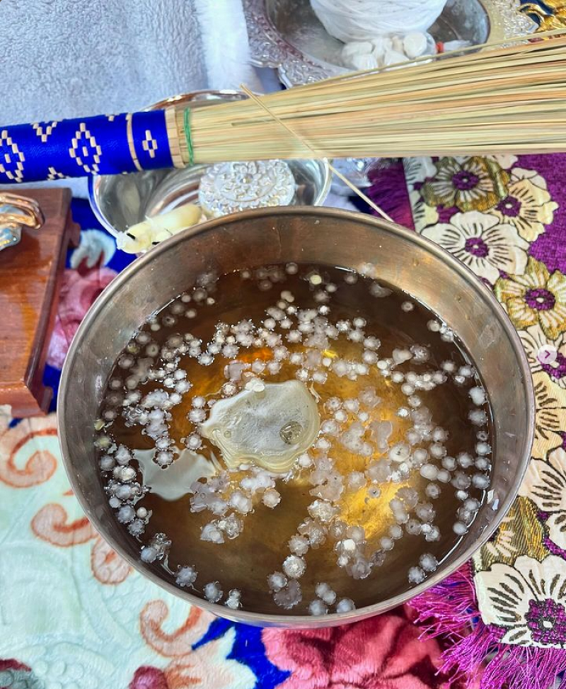 แม่แก้ว ยังได้โชว์ภาพขันน้ำมนต์ที่มีหยดเทียนอยู่ในนั้นมาฝากแฟนๆที่ชอบเสี่ยงโชคอีกด้วย และยังเผยเลขที่บ้านโดยคือเลข 999 บอกเลยว่าเลขสวยมากๆ งานนี้แฟนๆต่างพากันตีเลขเพื่อลุ้นสลากกินเเบ่งรัฐบาลประจำวันที่ 1 พ.ย. 67