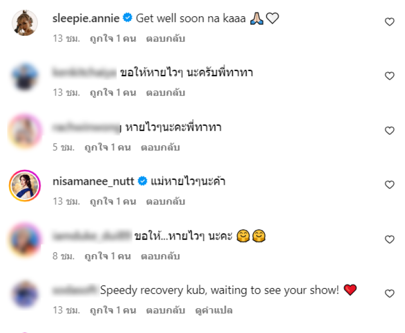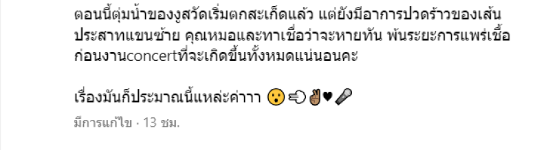 ท่ามกลาง เพื่อนๆในวงการ และแฟนคลับเข้ามาให้กำลังใจกันจำนวนมาก ทางทีมข่าวขอให้หายเร็วๆนะคะ