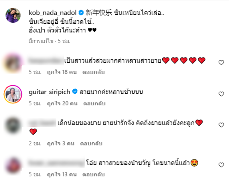 งานนี้ กีต้าร์ ศิริพิชญ์ ผู้จัดละครคนเก่งได้เข้ามาคอมเมนต์ด้วยว่า สวยมากค่ะหลานช้านนน บอกเลยว่าน้องณดาสวยออร่าเป็นนางเอกได้สบายๆเลย และยังมีแฟนๆเข้ามาคอมเมนต์กันอีกจำนวนมากเลย บอกเลยว่าสวยได้แม่เต็มๆ