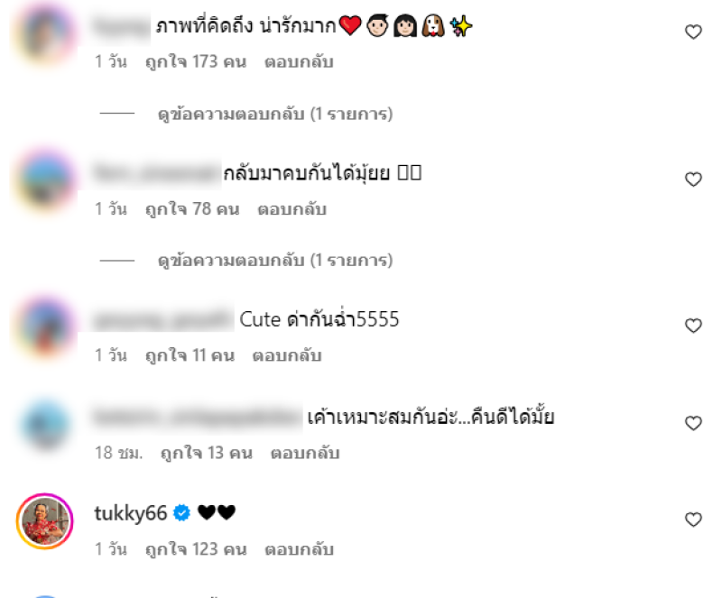 หลังจากภาพเผยแพร่ออกไปนั้น ได้มีแฟนคลับจำนวนมาก เข้ามาคอมเมนต์ และมีบางคนเชียร์ให้ทั้งคู่นั้นกลับมาคบกันนั่นเอง