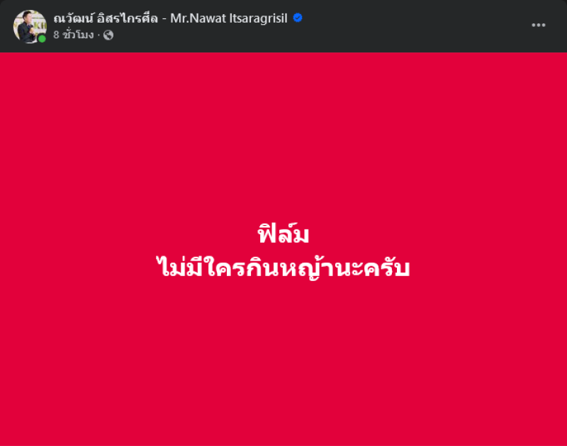 กลายเป็นอีกหนึ่งประเด็นร้อนแรงวำหรับเรื่องราวของ ฟิล์ม รัฐภูมิ ที่แอบอ้างชื่อ หนุ่ม กรรชัย เรียกได้ว่าทำเอาคนทั้งประเทศต่างแสดงความคิดเห็นถึงกรณีนี้จำนวนมาก ทั้งนี้ทางด้าน ณวัฒน์ อิสรไกรศีล โพสต์เฟสบุ๊กลั่นถึงฟิล์ม บอกว่า ฟิล์ม ไม่มีใครกินหญ้านะครับ