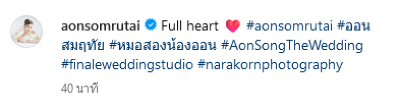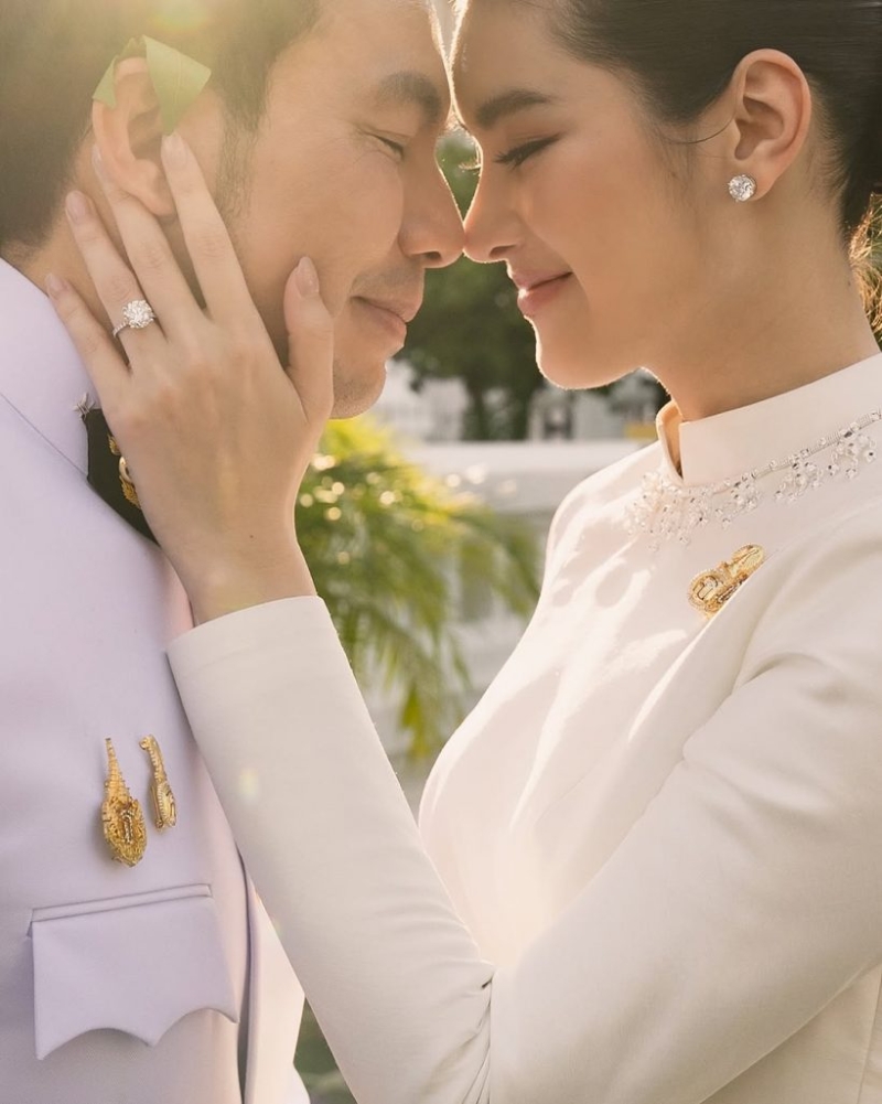 ล่าสุด หมอสอง นพรัตน์ และ น้องออน สมฤทัย ได้เข้าพิธีรับน้ำสังข์พระราชทาน โดยแต่งกายในลุคหรูหรา สง่างาม สวมใส่เข้ากับร่างกายได้อย่างพอดี โดดเด่นด้วยการปักลวดลายอย่างประณีต เสริมด้วยเครื่องประดับไทยที่งดงาม พร้อมโพสต์ภาพลงใน อินสตาแกรม ว่า Full heart #aonsomrutai #ออนสมฤทัย #หมอสองน้องออน #AonSongTheWedding #finaleweddingstudio #narakornphotography