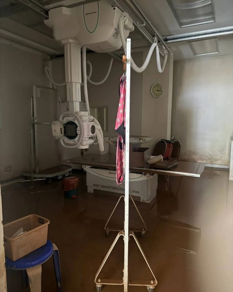 โดยเพจเฟซบุ๊กชื่อดัง หมอแล็บแพนด้า ได้โพสต์ภาพห้อง X-ray และเครื่องมือแพทย์ที่จมน้ำเสียหาย เช่น เครื่องเอกซเรย์ และเครื่อง CT สแกน พร้อมข้อความ