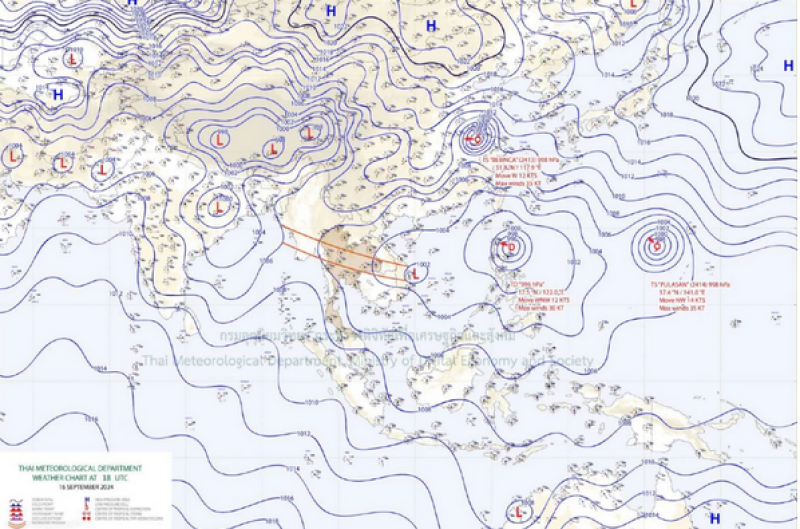 กรมอุตุนิยมวิทยา เตือน พายุดีเปรสชัน บริเวณตอนบนของประเทศฟิลิปปินส์ มีแนวโน้มจะเคลื่อนตัวลงสู่ทะเลจีนใต้ตอนบนในวันนี้ (17 ก.ย. 2567) คาดว่าจะทวีกำลังแรงขึ้นเป็นพายุโซนร้อน และจะเคลื่อนขึ้นฝั่งบริเวณประเทศเวียดนามตอนบนในช่วงวันที่ 20-21 ก.ย. 2567 ลักษณะเช่นนี้ส่งผลทำให้ภาคเหนือและภาคตะวันออกเฉียงเหนือจะมี ฝนตกหนักถึงหนักมาก บางแห่ง