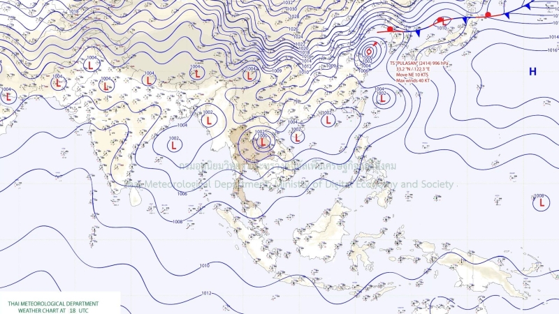 จากมรสุมตะวันตกเฉียงใต้กำลังแรงพัดปคลุมทะเลอันดามัน ภาคใต้และอ่าวไทยมีกำลังแรง ประกอบกับร่องมรสุมกำลังค่อนข้างแรงพาดผ่านภาคเหนือตอนล่าง ในขณะหย่อมความกดอากาศต่ำกำลังแรงที่อ่อนกำลังลงจากพายุดีเปรสชัน “ซูลิก” เคลื่อนเข้าปกคลุมภาคเหนือตอนล่าง