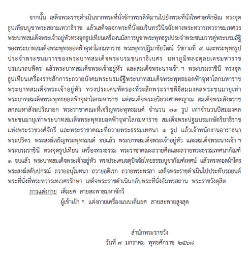 หมายกำหนดการ พระราชพิธีสมมงคล วันที่ 14 มกราคม 2568
