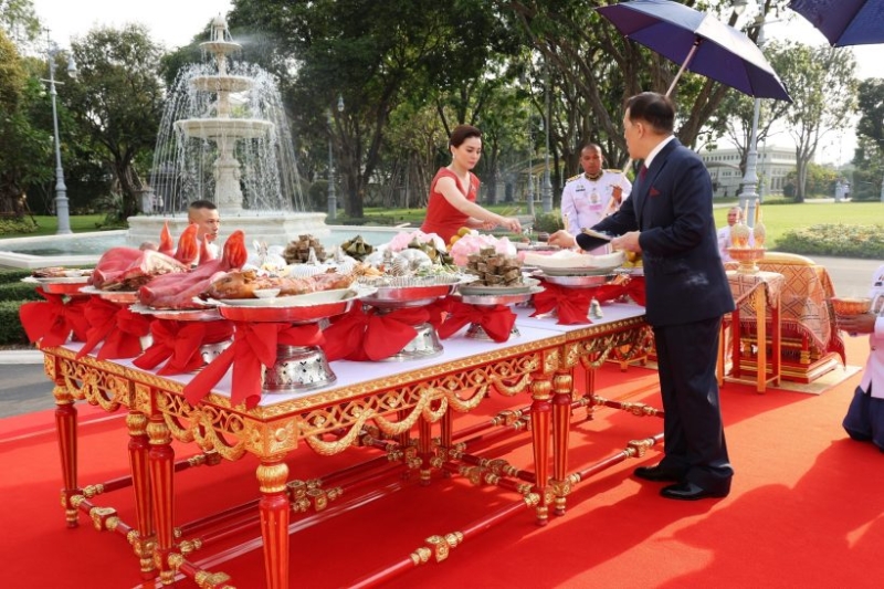 วันที่ 29 มกราคม 2568 เวลา 08.43 น. พระบาทสมเด็จพระเจ้าอยู่หัว และสมเด็จพระนางเจ้าฯ พระบรมราชินี เสด็จ ณ พระที่นั่งอัมพรสถาน พระราชวังดุสิต ทรงประกอบพระราชพิธีสังเวยพระป้าย เนื่องในเทศกาลตรุษจีน