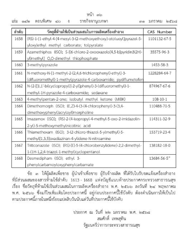 ประกาศ ณ วันที่ 22 มกราคม พ.ศ. 2568 ลงนามโดย นายสมศักดิ์ เทพสุทิน รัฐมนตรีว่าการกระทรวงสาธารณสุข