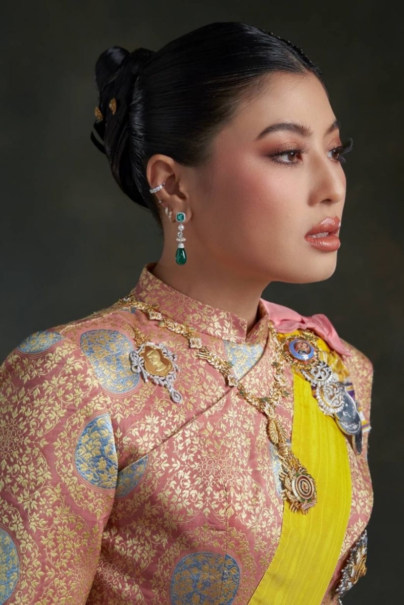 ฉลองพระองค์ชุดไทยศิวาลัยตัดเย็บจากผ้ายกดิ้นทองลายฝาบาตร สอดไหมสี ออกแบบและอำนวยการทอโดย อาจารย์วีรธรรม ตระกูลเงินไทย และ ออกแบบตัดเย็บโดย นายธีระพันธ์ วรรณรัตน์ ศิลปินแห่งชาติสาขาทัศนศิลป์ (การออกแบบแฟชั่น)