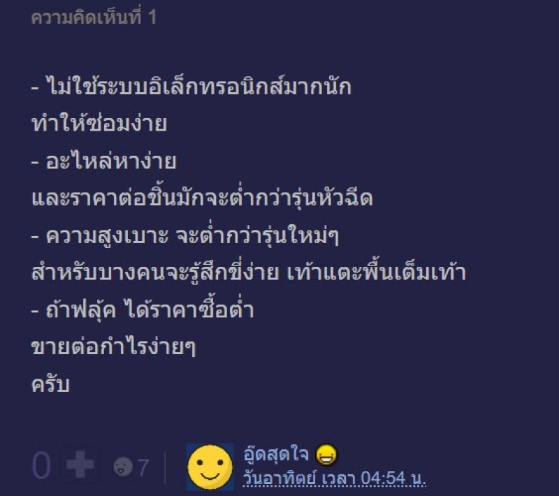 ไม่ใช้ระบบอิเล็กทรอนิกส์มากนัก ทำให้ซ่อมง่าย – อะไหล่หาง่าย และราคาต่อชิ้นมักจะต่ำกว่ารุ่นหัวฉีด – ความสูงเบาะ จะต่ำกว่ารุ่นใหม่ๆ สำหรับบางคนจะรู้สึกขี่ง่าย เท้าแตะพื้นเต็มเท้า – ถ้าฟลุ้ค ได้ราคาซื้อต่ำ ขายต่อกำไรง่ายๆ ครับ