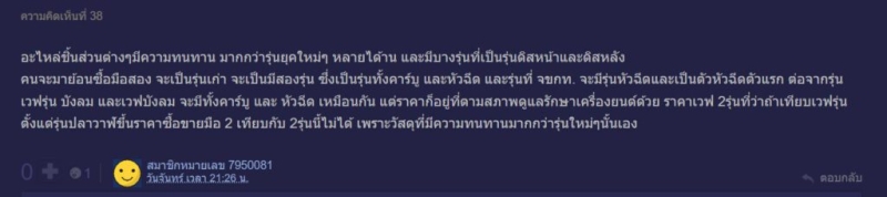 จากกรณี คุณ tongboy สมาชิกเว็บไซต์พันทิปได้ออกมาตั้งกระทู้สอบถามว่ามอไซค์เวฟ รุ่นนี้ มันดียังไงครับ มีคนมาขอซื้อ6คนแล้ว ซื้อมาปี2548 47,500 19ปีแล้ว 2ปีมานี่ มีคนมาขอซื้อจัง 6คนแล้ว มันดียังไงหรือครับ