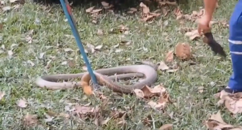 เจ้าหน้าที่พร้อมบ่วงคล้องจับเข้าตรวจสอบด้วยความระมัดระวัง ก่อนจะเปิดฝากระโปรงรถอย่างช้าๆ พบงูจงอางยาวประมาณ 3 เมตรซุกอยู่ห้องเครื่องข้างขวา จึงใช้บ่วงคล้องจับอยู่นาน 10 นาที จึงจับสำเร็จ ท่ามกลางความโล่งใจของเจ้าของรถ ก่อนนำใส่หระสอบไปปล่อยป่า สอบถมเจ้าของรถยังไม่ทราบว่างูจงอางเลื้อยเข้าไปในห้องเครื่องตั้งแต่เมื่อไร แต่คาดว่าน่าจะหนีความหนาวเย็นสวนยางพารา ซุกห้องเครืองที่มีความอุ่น หลังบรรดาคอหวยทราบไม่พลาดที่จะส่องเลขทะเบียนรถและความยาวงูจงอางแทงหวยงวดวันที่ 16 มี.ค.นี้
