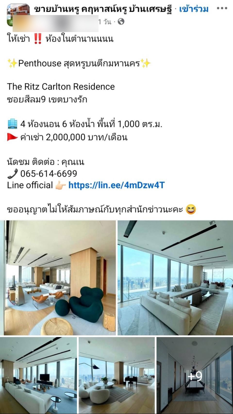 เรียกได้ว่าเป็นเพ้นท์เฮ้าส์ใจกลางเมืองที่สร้างกระแสฮือฮากันอย่างมาก หลัง ดิว อริสรา เคยเช่าจากราคาเช่า 1.5 ล้าน เเต่ตอนนี้ราคาได้พุ่งขึ้นพร้อมปล่อยเช่าเป็นเดือนละ 2 ล้านบาทเลยทีเดียว โดยพบเห็นการประกาศเช่าในกลุ่ม โดยโพสต์ข้อความว่า ให้เช่า ห้องในตำนาน Penthouse สุดหรูบนตึกมหานคร The Ritz Carlton Residence