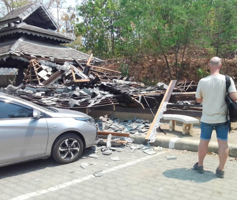 ผู้ใหญ่บ้านหมู่ 10 ต.ทุ่งยาว อ.ปาย จ.แม่ฮ่องสอน รายงานถึงผลกระทบจากแผ่นดินไหวว่า ในเบื้องต้นพบว่า ศาลาพักร้อน แหล่งท่องเที่ยวกองแลนพัง 1 หลัง ไม่มีผู้บาดเจ็บ สำหรับสถานการณ์ที่เกิดขึ้น คนในตัวเมืองแม่ฮ่องสอน พากันตื่นตระหนก เนื่องจากไม่มีแผ่นดินไหวรุนแรงแบบนี้มาก่อน และพบว่ามีต้นไม้ล้มขวางถนน คาดว่าจะมีความเสียหายเป็นวงกว้าง โดยทาง ปภ.จังหวัดแม่ฮ่องสอน กำลังประสานไปยังนายอำเภอทุกอำเภอให้รายงานสถานการณ์ความเสียหายที่เกิดขึ้นเป็นการด่วน