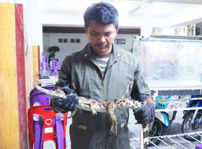 วันที่ 13 เม.ย.68 เจ้าหน้าที่งานป้องกันและบรรเทาสาธารณะภัยเทศบาลด่านสำโรง ได้รับแจ้งจากชาวบ้านภายในซอยด่านสำโรง 42 แยกย่อยสามัคคี 2 ตำบลสำโรงเหนือ อำเภอเมือง จังหวัดสมุทรปราการ ว่าพบ ตะโขง บริเวณใต้ถุนบ้านหลังหนึ่งภายในซอยดังกล่าว หลังจากที่รับแจ้งจึงเดินทางไปตรวจสอบ