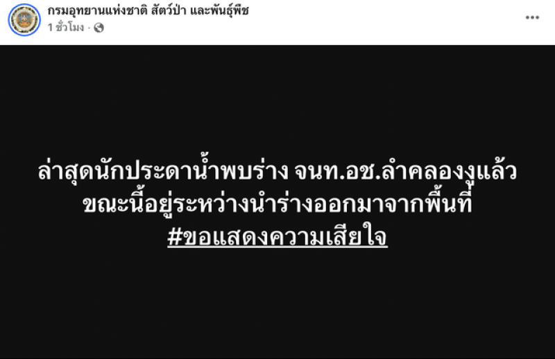 ทันทีที่ได้รับรายงาน นายอรรคนิตย์ กลางประพันธ์ หัวหน้าอุทยานแห่งชาติลำคลองงู ได้สั่งการให้ชุดกู้ภัยประจำอุทยานลงพื้นที่ค้นหาอย่างเร่งด่วน ในเวลาต่อมา นายอรรถพล เจริญชันษา อธิบดีกรมอุทยานแห่งชาติ สัตว์ป่า และพันธุ์พืช ได้สั่งการให้เสริมกำลังโดยประสานหน่วยกู้ภัยทางน้ำจากมูลนิธิพิทักษ์กาญจน์ ซึ่งมีความเชี่ยวชาญด้านการดำน้ำในพื้นที่ถ้ำซับซ้อน เข้าร่วมปฏิบัติการค้นหาทันที