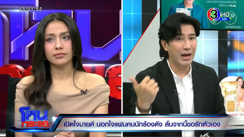 รายการ โหนกระแส วันที่ 17 เม.ย. 68 ทางด้าน มายด์ สาวที่ถูกมองว่าเป็นมือที่ 3 โตโน่-ณิชา ได้ออกมาเล่าความจริงอีกมุมของเจ้าตัว พร้อมเล่าตั้งแต่มายด์ เริ่มรู้จัก โตโน่ จนไปทำงานด้วยกัน โดยก่อนหน้านี้ เพชร แฟนหนุ่มที่ได้มาเปิดเผยเรื่องราวระบุว่าตนมีอายุ 28 กำลังจะ 29 ปี และทำงานเป็นกราฟิกดีไซเนอร์ นักเทรดหุ้น และแลกเหรียญคริปโต