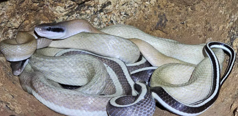 สาเหตุที่พบเจอได้ยากเพราะเป็นงูที่อาศัยอยู่ในโพรงถ้ำเป็นหลัก ลักษณะตัวยาว งูชนิดนี้จะกินค้างคาวเป็นอาหารหลัก โดยจะอาศัยลำตัวขวางทางเข้า-ออกของค้างคาว ส่วนลักษณะที่พันกันนั้นน่าจะเป็นการผสมพันธุ์เ พราะงูชนิดนี้จะผสมพันธุ์กันบนต้นไม้