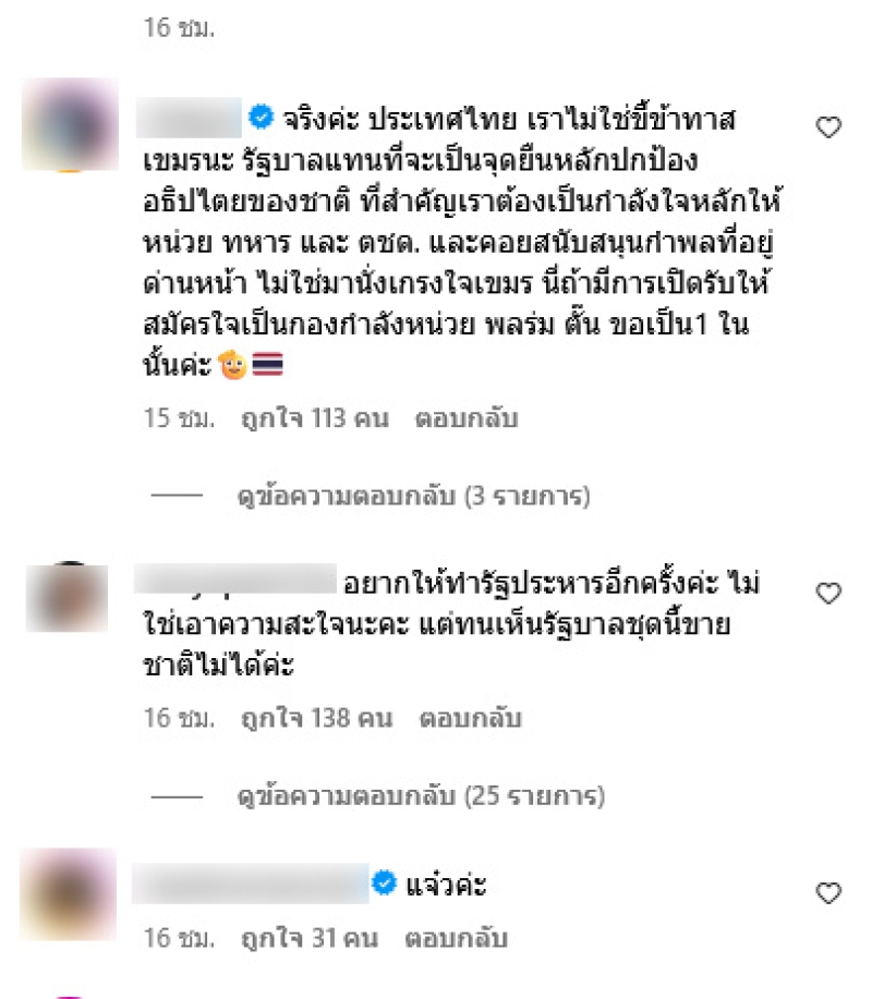 ถ้าคุยไม่รู้เรื่อง ไม่ต้องคุย ไม่ต้องยกหู ปิดด่าน ยืงปืนใหญ่เข้าไปก่อน รุกเข้าปอยเปต ยึดศรีโสภณ แล้วค่อยเจรจา พร้อมแคปชั่นระบุ เพิ่มเติมบอกว่า ทหารเเก่รำคาญ #ไทยนี้รักสงบเเต่ถึงรบไม่ขลาด