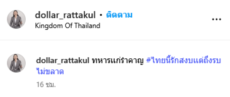 ทำเอาโซเชียลกำลังเดือดกันสนั่นเลยทีเดียว พร้อมติดแฮชแท็ก #ไทยนี้รักสงบแต่ถึงรบไม่ขลาด หลังมีสถานการณ์ชายแดน ไทย-กัมพูชา กำลังมีปัญหากันอยู่ ท่ามกลางคนในวงการต่างออกมาเคลื่อนไหวกันอย่างมาก ล่าสุด พล.ต.พัชร รัตตกุล หรือ เสธ.ดอลล่าร์ ได้ออกมาโพสต์ผ่านอินสตาแกรม dollar_rattakul ระบุข้อความว่า
