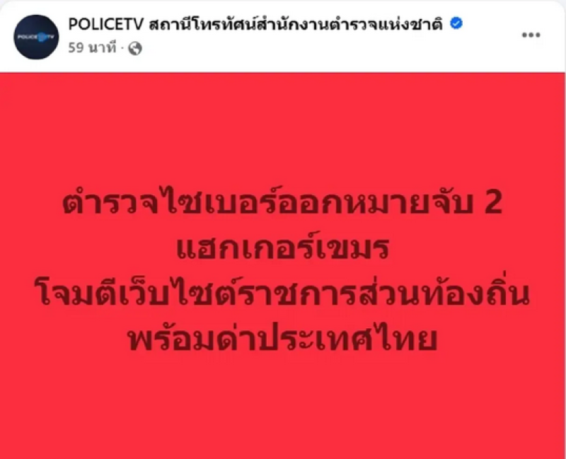 วันที่ 10 มิ.ย. 68 พล.ต.ท.ไตรรงค์ ผิวพรรณ ผบช.สอท. สั่งการให้เจ้าหน้าที่ตำรวจในเร่งสืบสวนกรณีเจ้าหน้าที่ตำรวจไซเบอร์ตรวจสอบพบหลักฐานว่ามีการโจมตีเว็บไซต์หน่วยงานภาครัฐของไทยจากกลุ่มแฮกเกอร์ต่างชาติในช่วงเดือน เม.ย. – มิ.ย.68 จริง โดยพบว่าเว็บไซต์ของหน่วยงานราชการหลายแห่ง ถูกแฮกและเปลี่ยนหน้าเว็บไซต์ (Web Defacement) พร้อมข้อความแสดงตัวจากกลุ่มแฮกเกอร์ ได้แก่ กลุ่ม "ANONSEC-KH", กลุ่ม "H3C4KEDZ", และกลุ่ม "NXBBSEC (Hacker Cambodia)"