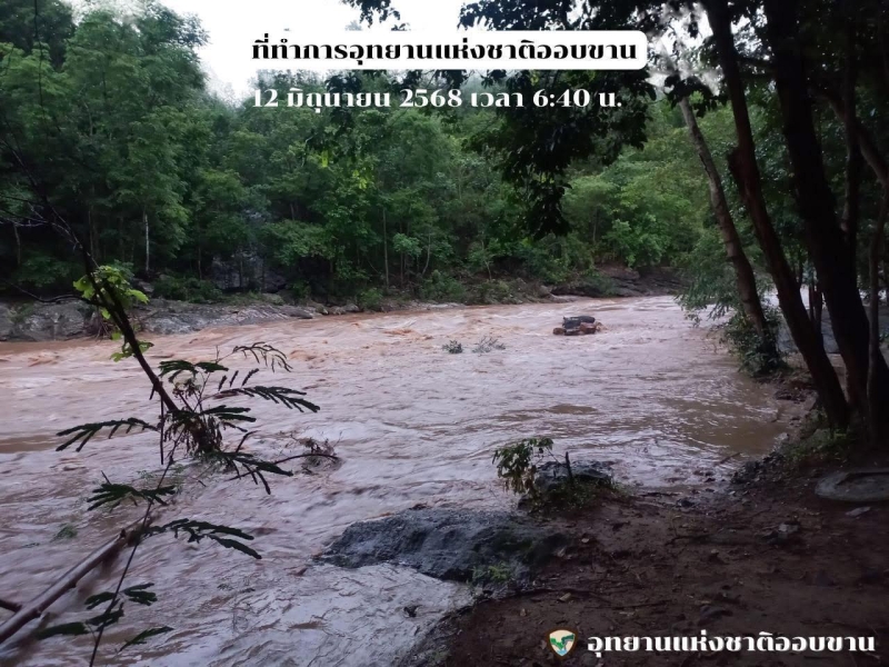 วันที่ 12 มิ.ย. 2568 เวลา 07.00 น. สถานการณ์น้ำแม่ขาน บริเวณ อุทยานแห่งชาติออบขาน เริ่มมีระดับน้ำสูงขึ้น หลังฝนตกต่อเนื่องในหลายจุด โดยทางอุทยานฯ รายงานว่า