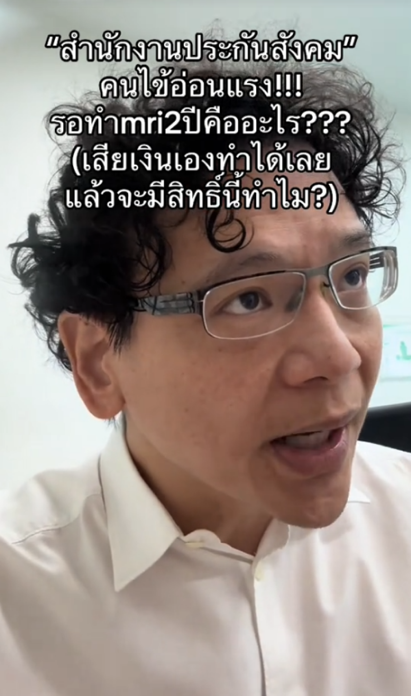 ทุกข์ของคนไข้ใช้สิทธิประกันสังคม ด็อกเตอร์หมอหมี ได้เล่าเคสคนไข้ผ่าน ติ๊กตอก@doctormhormhee ใช้สิทธิ์ประกันสังคม แต่กลับต้องรอคิวตรวจ MRI นานถึง 2 ปีเต็ม แม้อาการเริ่มรุนแรงจนถึงขั้นอ่อนแรง แขนขาปวดร้าว ซึ่งหากปล่อยไว้ อาจลุกลามจนถึงขั้นเดินไม่ได้