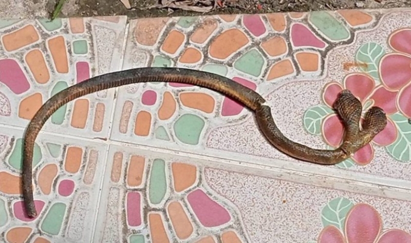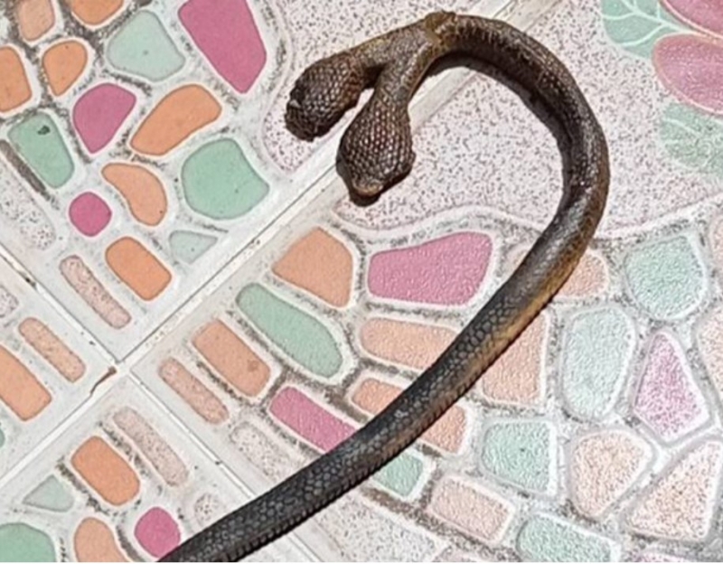 โดบพบงูรูปร่างประหลาดมี 2 หัว เหมือนแผ่แม่เบี้ยลำตัวยาวประมาณ 40 เซนติเมตร สีเหลืองดำ หางกุด ตายอยู่ภายในตู้เสื้อผ้า สร้างความตกใจให้กับตัวเองและครอบครัวเป็นอย่างมาก