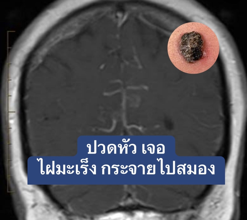 ปวดหัวโรคที่ใครๆ ก็เป็นบางทีก็หาเหตุยาก แม้กระทั่งจากไฝแต่คือไฝมะเร็ง เคสชายอายุ 42 ปี มาโรงพยาบาลด้วยอาการปวดศีรษะมาก 1 เดือน คลื่นไส้ ซื้อยาทานบอกเป็นไมเกรน ไปอีกหมอ ลองทานยาคลายเครียด สุดท้ายตรวจ MRI เยื่อหุ้มสมองมีปัญหา ถามไปมา มีไฝที่ผิดปกติ ในช่วง ครึ่งปี และแล้ว ก็เจอ ไฝมะเร็ง Malignant melanoma มันกระจายไปเยื่อหุ้มสมอง