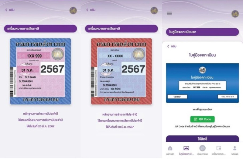 -ผ่านแอปพลิเคชัน: ระบบจะจัดส่งเครื่องหมายแสดงการเสียภาษีให้ทางไปรษณีย์