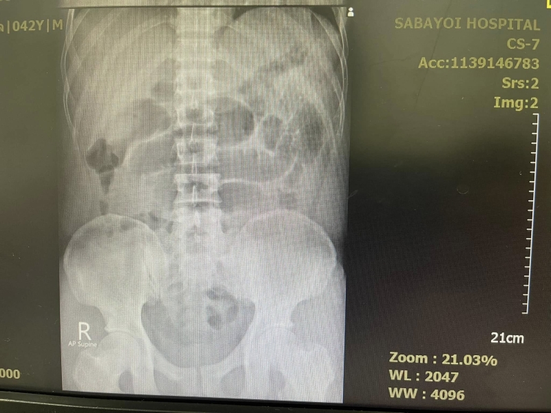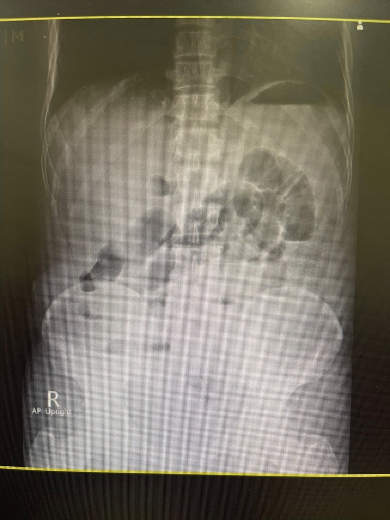 คนไข้อายุสี่สิบเศษ กินน้ำท่อม ทุกวันมา 4-5 ปี ปวดท้องจึงมาโรงพยาบาล ผมคลำแล้วก็พบว่าท้องอืดๆ ให้ไปเอ็กซเรย์ กลับมาภาพสวยเหมือนในตำรา พบว่ามีภาวะลำไส้อุดตัน จึงให้นอนโรงพยาบาลใส่สายยาง NG tube เข้ากระเพาะต่อกับเครื่องดูดลมออกจากกระเพาะ ถ้าดีขึ้นลำไส้คลายตัวก็โล่งไป ถ้าไม่ดีก็ต้องส่งไปผ่าตัด