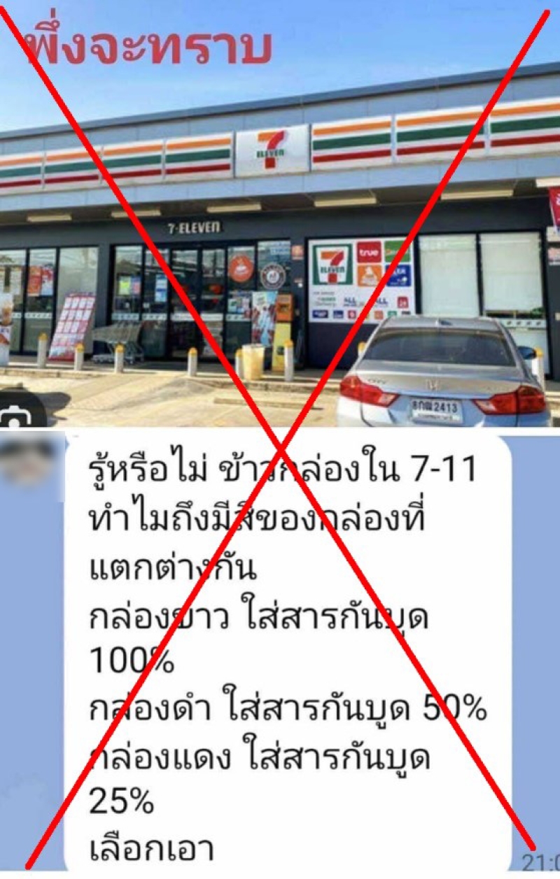 ขณะที่ รศ.ดร.เจษฎา เด่นดวงบริพันธ์ อาจารย์ประจำภาควิชาชีววิทยา คณะวิทยาศาสตร์ จุฬาลงกรณ์มหาวิทยาลัย ก็ได้แชร์ข้อมูลช่วยยืนยันผ่านทางเฟซบุ๊ก Jessada Denduangboripant ระบุข้าวกล่อง 7-Eleven มีสีที่แตกต่างกันคือ แดง-ดำ-ขาว ทีนี้ก็เกิดเป็นเรื่องน่าสงสัยว่าเป็นข้าวกล่อง 7-Eleven เหมือนกันแต่ทำไมสีต่างกัน มีที่มาที่ไปของเรื่องนี้เป็นอย่างไร