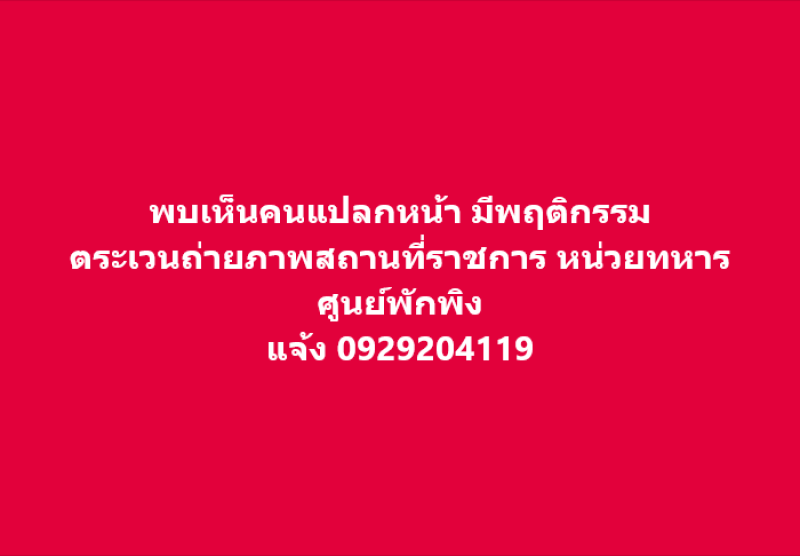 ล่าสุดวันที่ 26 ก.ค. 68 ทางด้านเพจสำนักงานประชาสัมพันธ์จังหวัดตราด ได้ออกมาโพสต์แจ้งเตือนประชาชน จังหวัดตราด ระบุว่า พบเห็นคนแปลกหน้า มีพฤติกรรม ตระเวนถ่ายภาพสถานที่ราชการ หน่วยทหาร ศูนย์พักพิง แจ้ง 0929204***