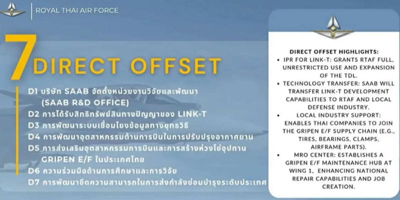 การจัดหา เครื่องบินกริพเพน เป็นการลงทุนที่สำคัญในด้านความมั่นคงของชาติ มีเป้าหมายในการทดแทนเครื่องบิน F-16 ที่ใช้งานมายาวนานกว่า 37 ปี จะถูกปลดประจำการในปี 2571-2578 หากไม่ดำเนินการจัดหาเครื่องบินใหม่ อาจกระทบต่อความสามารถในการป้องกันประเทศในระยะยาว นอกจากนี้ ยังมีการถ่ายทอดเทคโนโลยี และพัฒนาบุคลากรในอุตสาหกรรมป้องกันประเทศของไทย รวมทั้งความร่วมมือกับสวีเดนในด้านการศึกษา และวิจัย