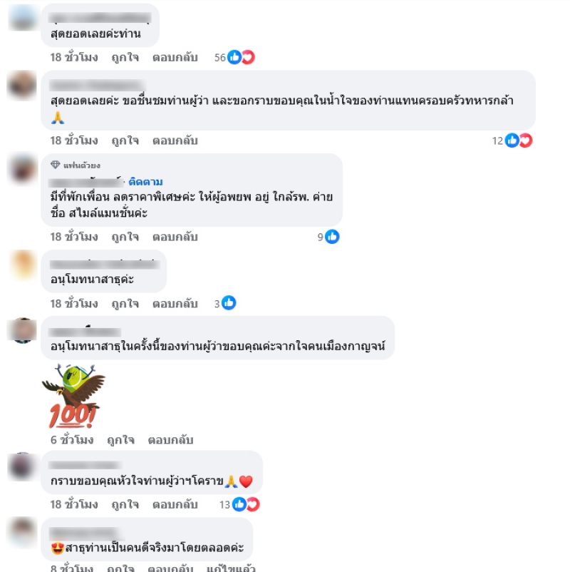 หากมีญาติพี่น้องมาเฝ้า ผู้ว่าฯ ได้จัดโรงแรมที่พักและอาหารทุกมื้อไว้ให้ จะพักกี่คืน จะมากี่คนก็ได้ จะดูแลจนกว่าจะรักษาจนหายดี ท่านดูแลชาติบ้านเมืองมามากแล้ว ขอให้เราได้ดูแลท่านบ้าง นายชัยวัฒน์ ชื่นโกสุม ผู้ว่าราชการ จ. นครราชสีมา กล่าว