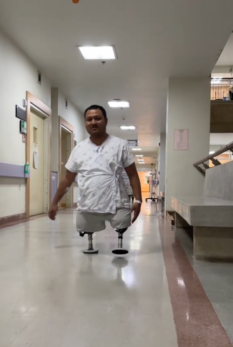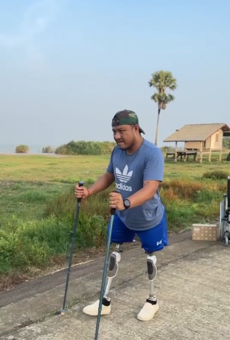 เขาเรียนรู้การใช้ขาเทียม กลับมาใช้ชีวิต ดูแลลูก ทำงาน และยังคงยืนหยัดในบทบาทของหัวหน้าครอบครัวอย่างไม่ย่อท้อ
