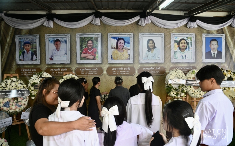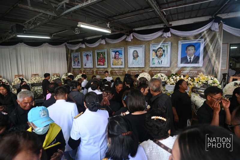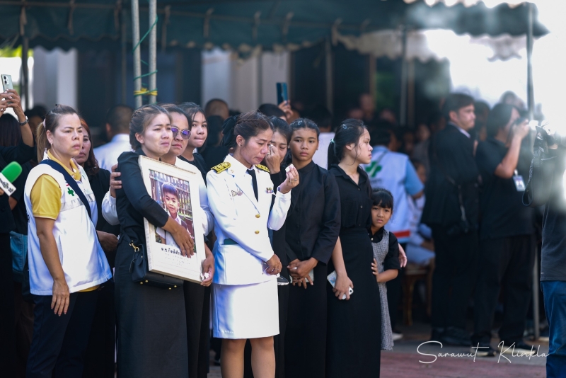พิธีจัดขึ้นอย่างสมเกียรติ ท่ามกลางบรรยากาศโศกเศร้า โดยมี นางนฤมล ภิญโญสินวัฒน์ รัฐมนตรีว่าการกระทรวงศึกษาธิการ เป็นประธานในพิธี พร้อมด้วยรัฐมนตรีร่วมรัฐบาล ผู้ว่าราชการจังหวัด นายกเหล่ากาชาด ข้าราชการ ทหาร ตำรวจ และประชาชนจำนวนมากมาร่วมไว้อาลัยและให้กำลังใจครอบครัวผู้เสียชีวิตอย่างอบอุ่น