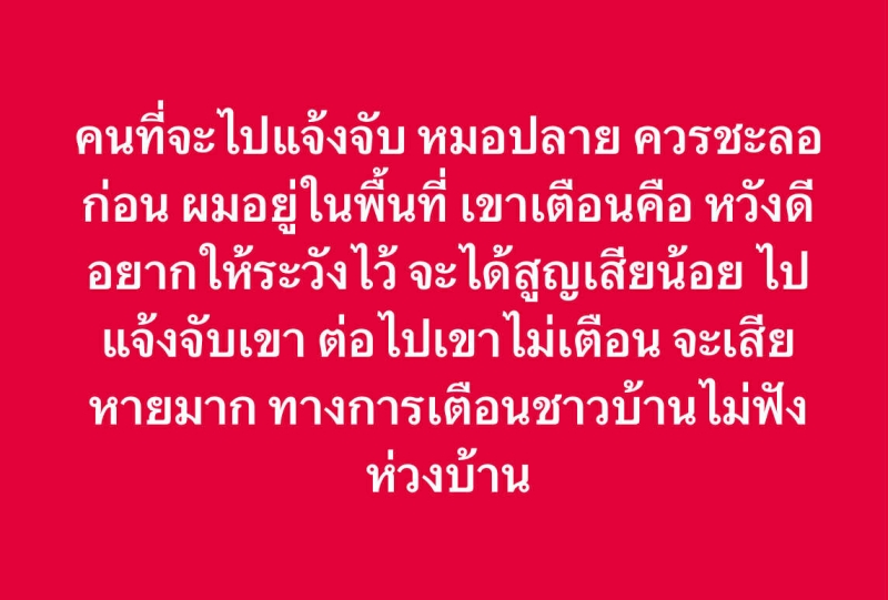 อีกทั้ง เขา ยังได้กล่าวเสริมอีกว่า การที่เจ้าหน้าที่ เตือนประชาชน แต่ถูกเพิกเฉย อาจนำไปสู่ความเสียหาย ที่มากกว่าเดิม จึงขอให้พิจารณาอย่างรอบคอบก่อนตัดสินใจดำเนินคดี