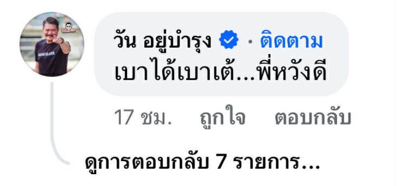 ขณะเดียวกัน นายวัน อยู่บำรุง กรรมการบริหารพรรคพลังประชารัฐ ก็ได้เข้ามาคอมเมนต์ในโพสต์ของ เต้ สั้นๆ แต่ได้ใจความว่า เบาได้เบาเต้ พี่หวังดี