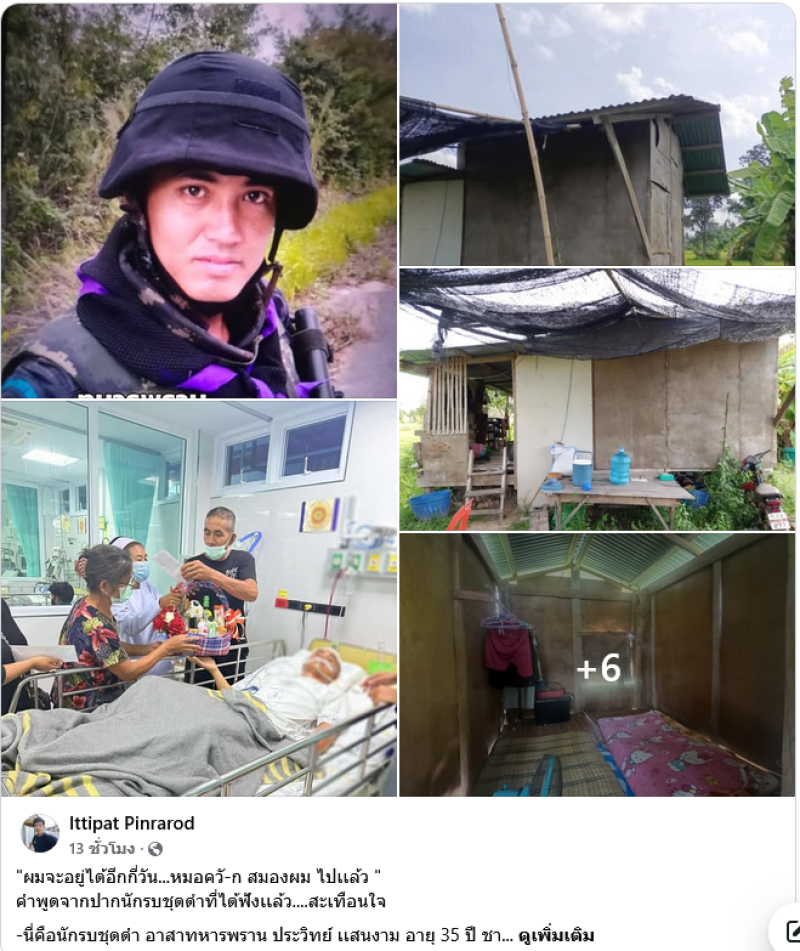 -นายทหารระดับสูงท่านหนึ่ง เเละ ภริยานายทหาร ได้ทราบ ถึงการบาดเจ็บ ด้วยความเห็นใจ ที่เขาเสียสละ ปกป้องผืนเเผ่นดินไทย จึงจะสร้างบ้านให้ทหารพรานนายนี้ิ ที่บ้านยากจน อยู่กระต๊อบ เล็กๆ ใช้ไม้อัดเป็นผนังบ้าน หลังคาไม่สนิท ฝนตกสาด ไม่มีห้องน้ำ จึงช่วยเหลือ เพื่อให้เขากลับออกมารักษาตัวที่บ้านอย่างสะดวกสบาย ตอบเเทนความเสียสละ ความกล้าหาญ