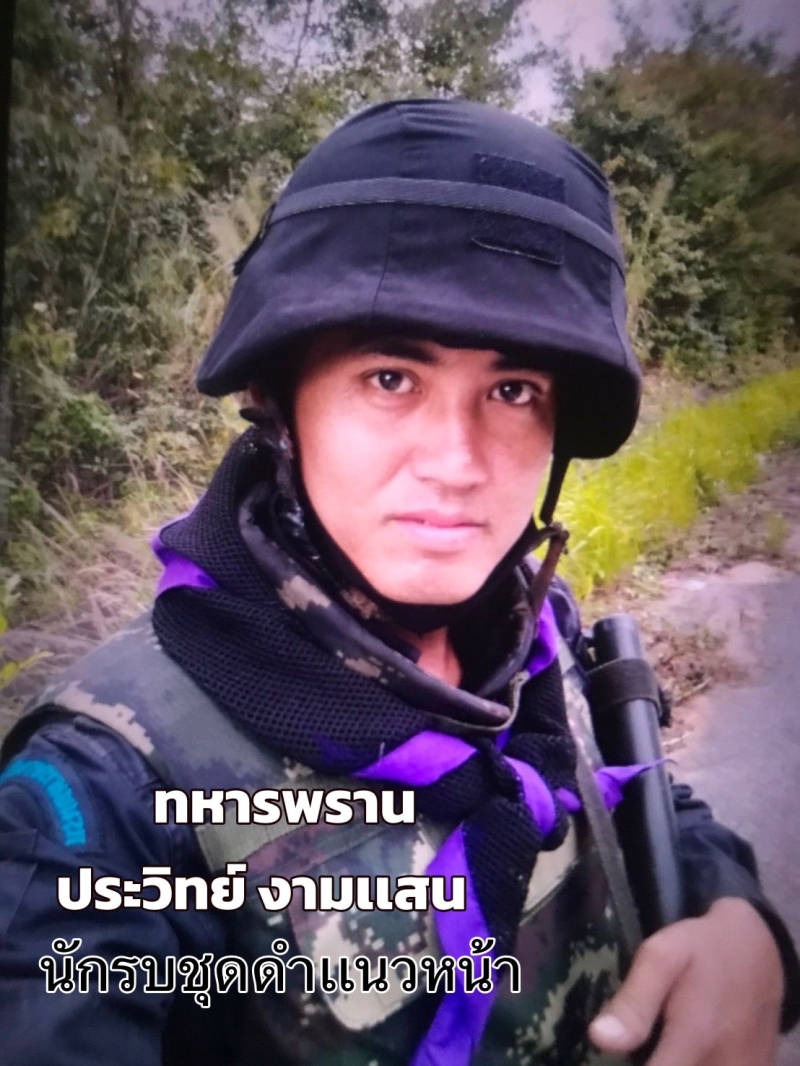 -นี่คือนักรบชุดดำ อาสาทหารพราน ประวิทย์ เเสนงาม อายุ 35 ปี ชาวอ.ชานุมาน จ.อำนาจเจริญ เเนวหน้าชายเเดน กันทรลักษ์ศรีสะเกษ