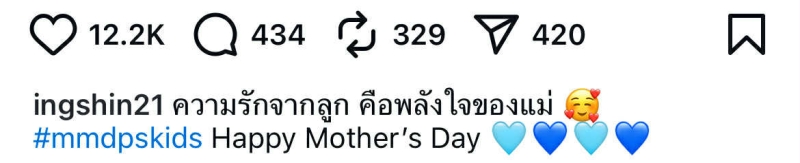 โดย มีข้อความสั้นๆ ว่า ความรักจากลูก คือพลังใจของแม่ พร้อมทั้งใส่แฮชแท็ก #mmdpskids เพื่อเผยให้เห็นถึงความสำคัญของความรักที่ลูกๆ มอบให้ในโอกาสพิเศษนี้