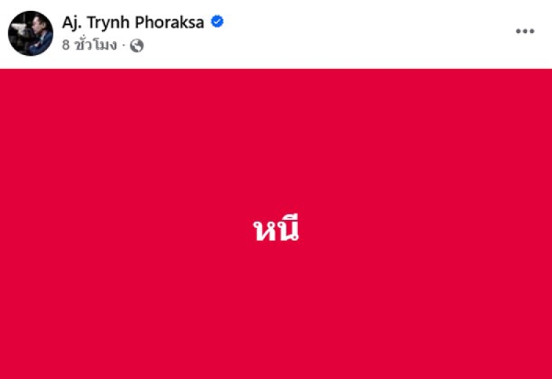 ดร.ตฤณห์ โพธิ์รักษา นักอาชญาวิทยาเชิงจิตวิทยาและผู้เชี่ยวชาญด้านพฤติกรรมอาชญากร สร้างความฮือฮาบนโลกออนไลน์ หลังโพสต์ข้อความสั้น ๆ แต่ชวนตั้งคำถามเพียงคำเดียวว่า หนี ผ่านเฟซบุ๊กส่วนตัว Aj. Trynh Phoraksa เมื่อคืนวันที่ 16 สิงหาคม 2568 จนกลายเป็นไวรัลทันที