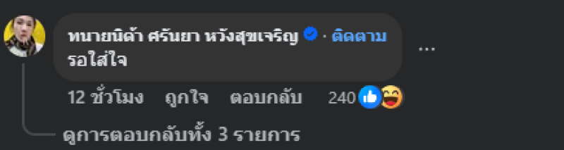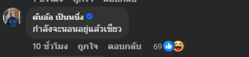 ต้นอ้อ เป็นหนึ่ง ก็เข้ามาคอมเมนต์ว่า กำลังจะนอนอยู่แล้วเชียว