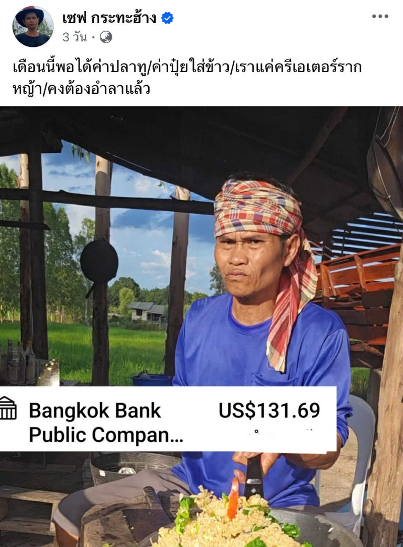 โดย มีแคปชั่นว่า เดือนนี้พอได้ค่าปลาทู ค่าปุ๋ยใส่ข้าว เราแค่ครีเอเตอร์รากหญ้า คงต้องอำลาแล้ว